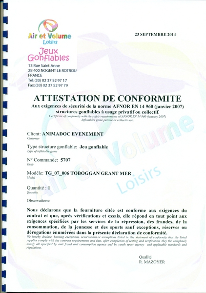 LOCATION STRUCTURES GONFLABLES, jeux sportifs, matériel de fête, Patinoire Sarl Animad'OC gonfle vos fêtes...